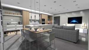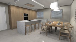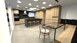 Aquest projecte integra una cuina i saló menjador amb mobles de roure natural, parquet i separació d’ambients per crear un espai harmoniós i acollidor.